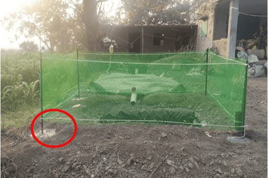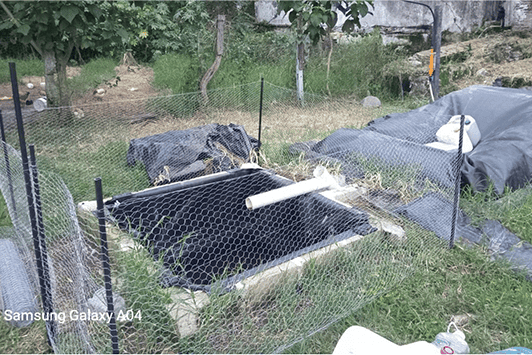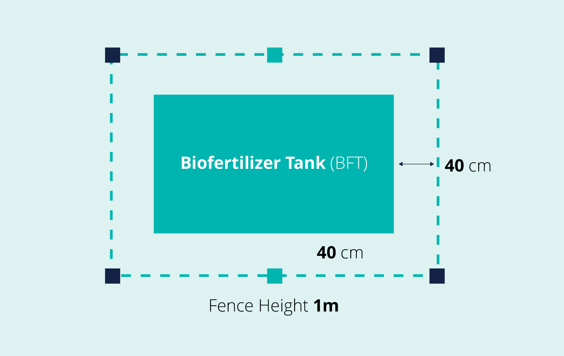 Participants must submit one photograph showing how they have fenced the biofertilizer tank of their biodigester system. The fence should be built from robust materials to keep small animals and unauthorized people, especially children, out of the secured area. It must be robust enough to resist 30 kg.